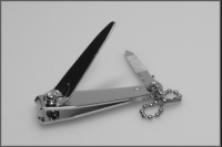 MANIKÜR- UND PEDIKÜRINSTRUMENTE - aller Art Nr. 1500 - Haareffilierer  Länge: 18 cm Nr. 1515 - Nagelknipser mit Kettchen Stahl vernickelt Länge: 5 cm Nr. 1690 - Wimpernformer  Stahl vernickelt Länge: 10 cm Nr. 1517 - Fußnagelknipser  Stahl vernickelt Länge: 8 cm Nr. 1810 - Hornhauthobel  Länge: 9 cm Nr. 1871 - Komedonendrücker  Stahl vernickelt Länge: 11 cm Nr. 1986 - Hornhautraspel 1-seitig      Länge: 18 cm Nr. 1872 - Komedonendrücker  Stahl vernickelt Länge: 8 cm Nr. 1987 - Hornhautraspel 2-seitig  Länge: 18 cm Nr. 2271 - Nagelhautmesser  Stahl vernickelt Länge: 11 cm Nr. 2371 - Nagelreiniger  Stahl vernickelt Länge: 9 cm Nr. 2311 - Doppelinstrument  Stahl vernickelt Länge: 8 cm Nr. 2372 - Nagelmesser  Stahl vernickelt Länge: 12 cm Nr. 2373 - Hautschieber  Stahl vernickelt Länge: 12 cm Nr. 2390 - Manicure                     holzstäbchen  6 Stück in Poly und Reiter Nr. 2395 - Doppelinstrument  Stahl vernickelt Länge: 11 cm Nr. 2396 - Manikürnagelreiniger  Kunststoff Länge: 10 cm Nr. 2397 - Hufstäbchen  Kunststoff Länge: 12 cm zurück zurück